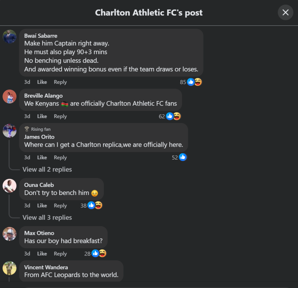 The Charlton takeover did not come out of nowhere. Kenyan fans have built a reputation for online unity. They often rally behind local players abroad.